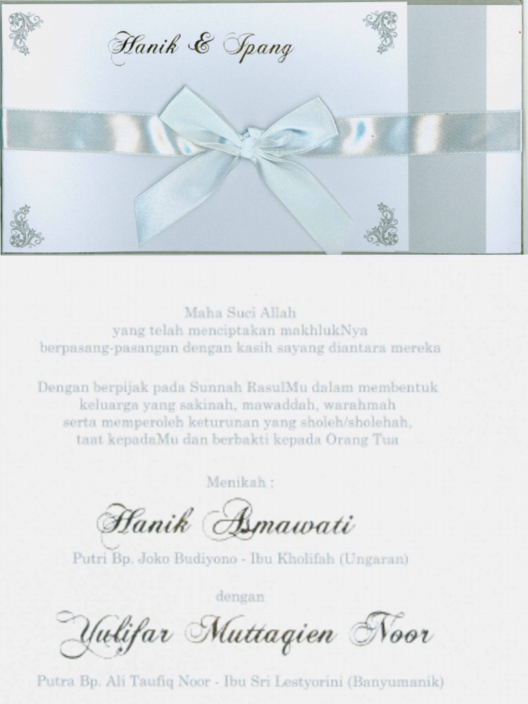 Undangan Nikah Pdf. Download as DOC, PDF, TXT or read online from Scribd. Contoh Undangan Pengajian Nikah Reiza Dan Juwita.